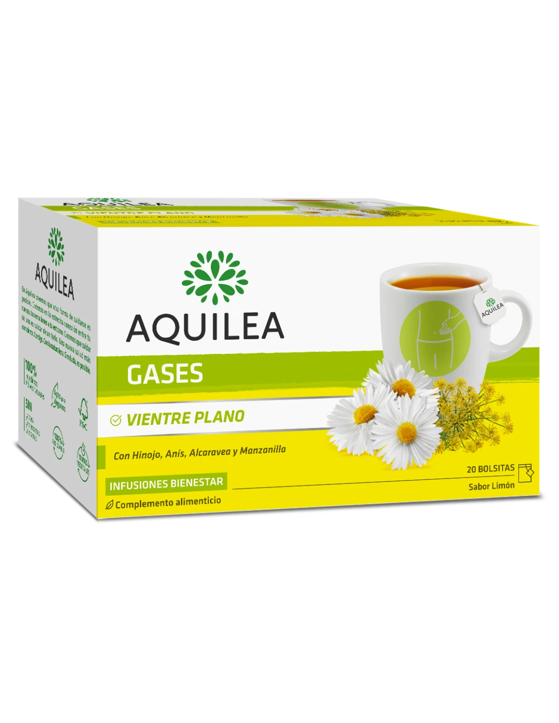 Aquilea Infusión Gases es una infusión de plantas que te ayudará a mejorar las molestias ocasionadas por los gases, proporcionándote una sensación de bienestar después de las comidas pesadas o malas digestiones.
