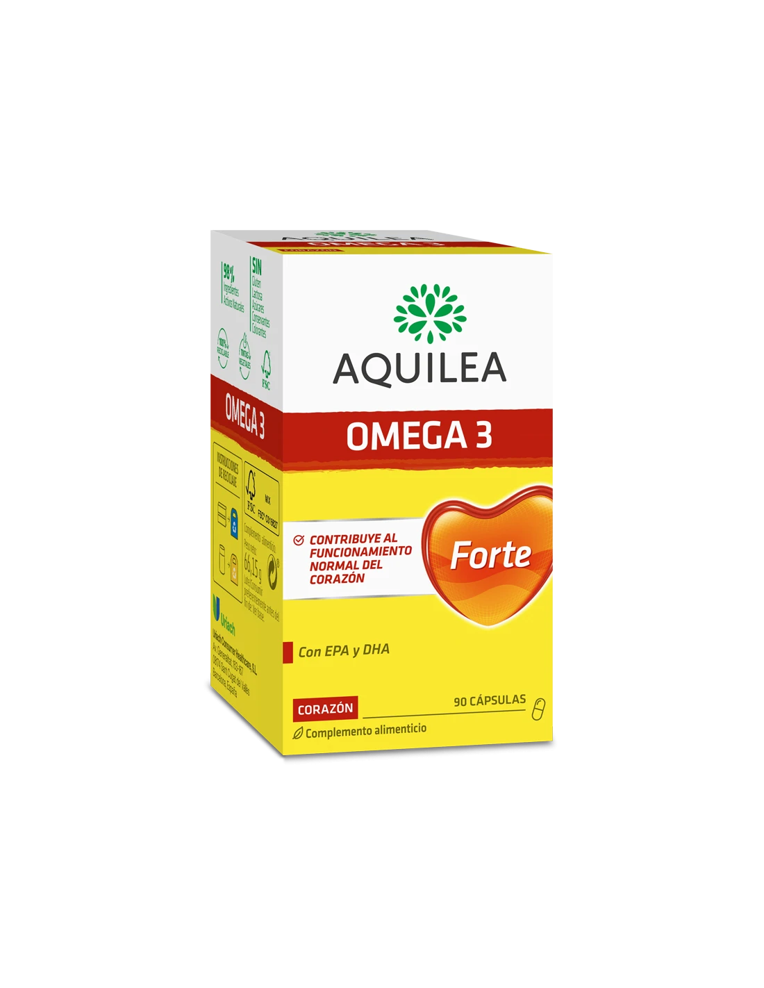 Aquilea Omega-3, al estar compuesto por EPA y DHA, contribuye al funcionamiento normal del corazón en las dosis diarias recomendadas de Omega-3.