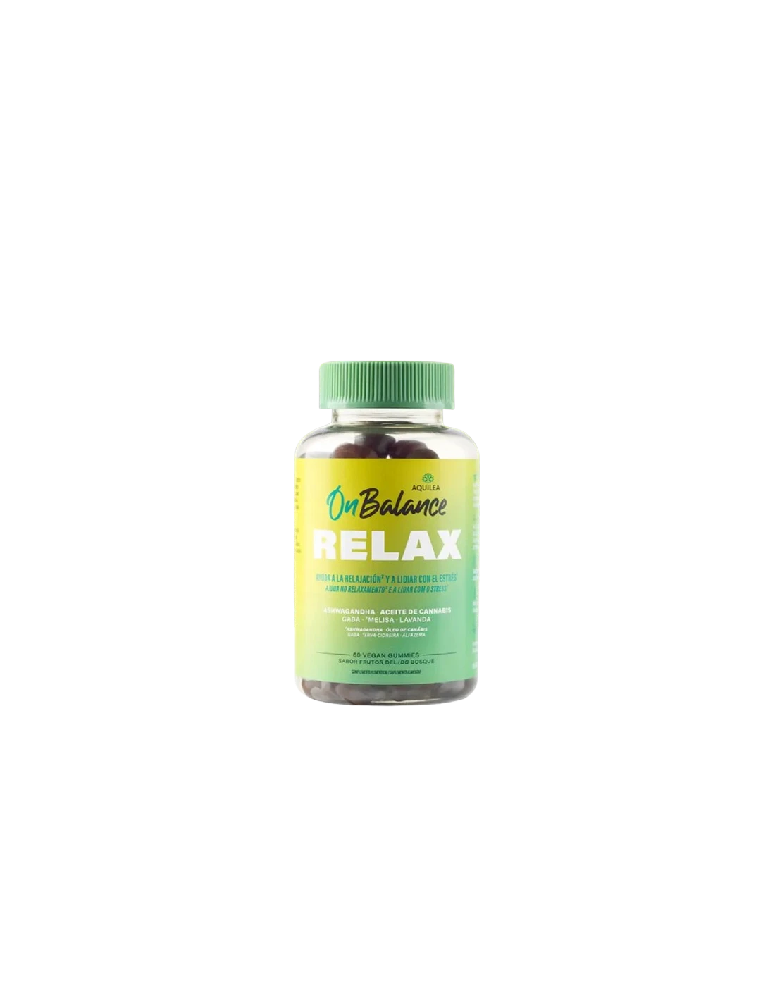 Aquilea On Balance Relax es un complemento alimenticio en gominolas con sabor a frutos del bosque para ayudarte a relajarte y lidiar con el estrés gracias a la acción sinérgica de: