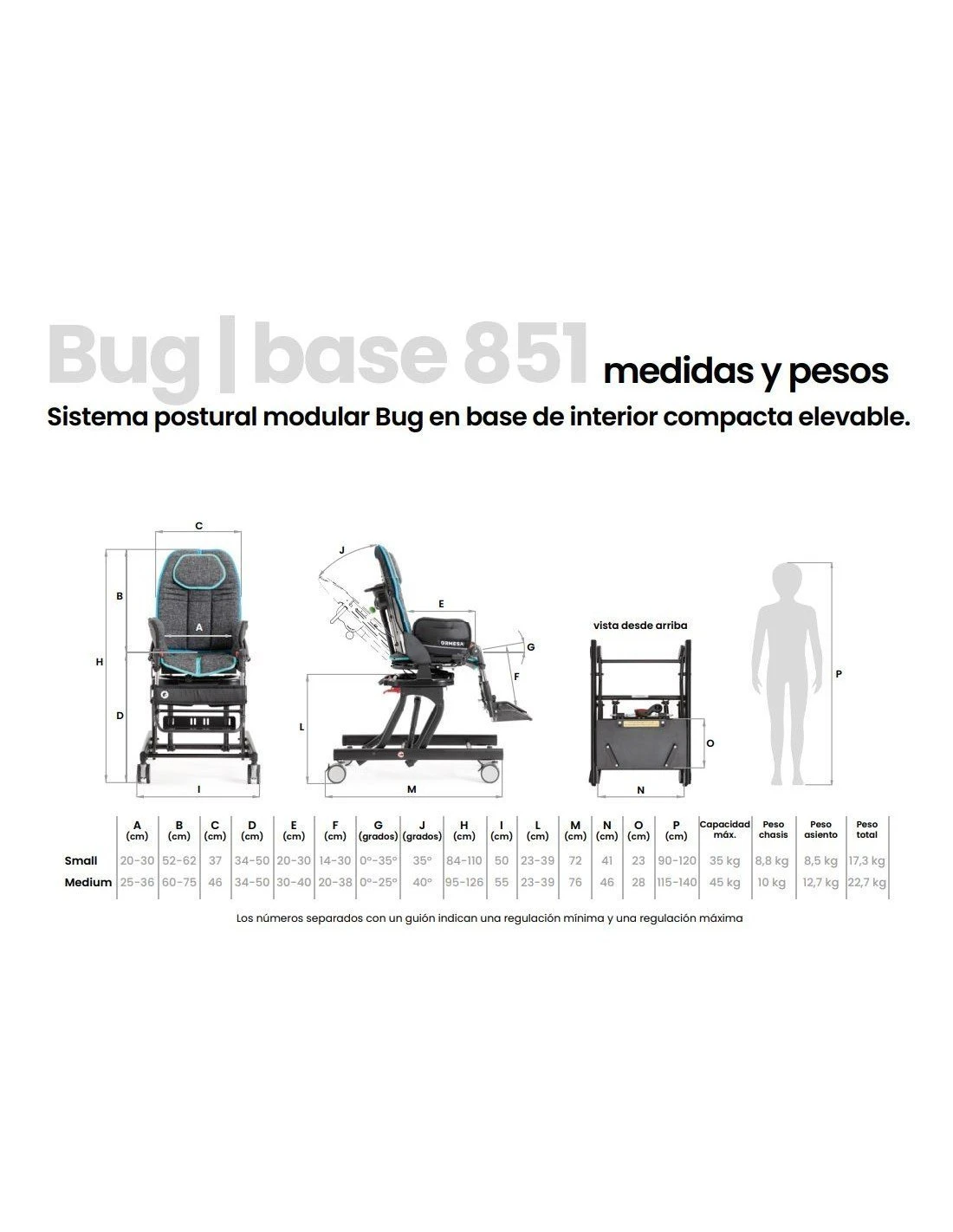 Base para interiores compacta, elevable y con ruedas para la Silla Pediátrica Basculante y Reclinable Bug.