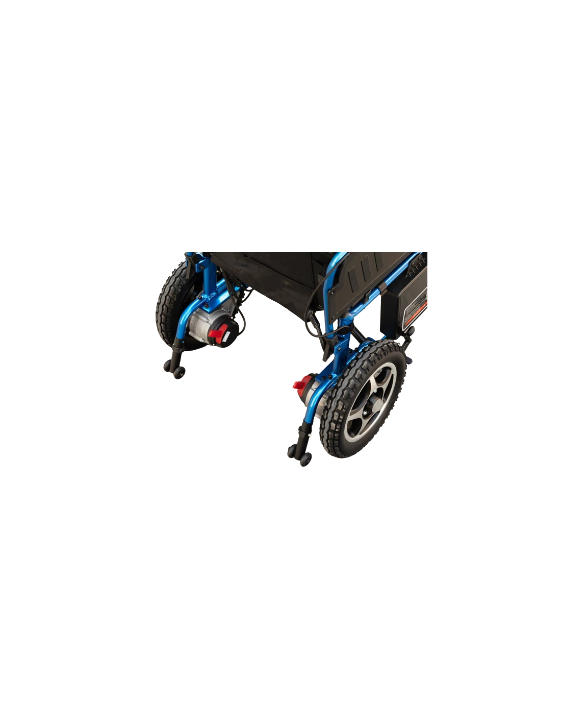 Incorpora ruedas delanteras de 8″ sobre horquilla de aluminio y ruedas traseras de 12” de poliuretano macizo sobre llanta de aluminio.