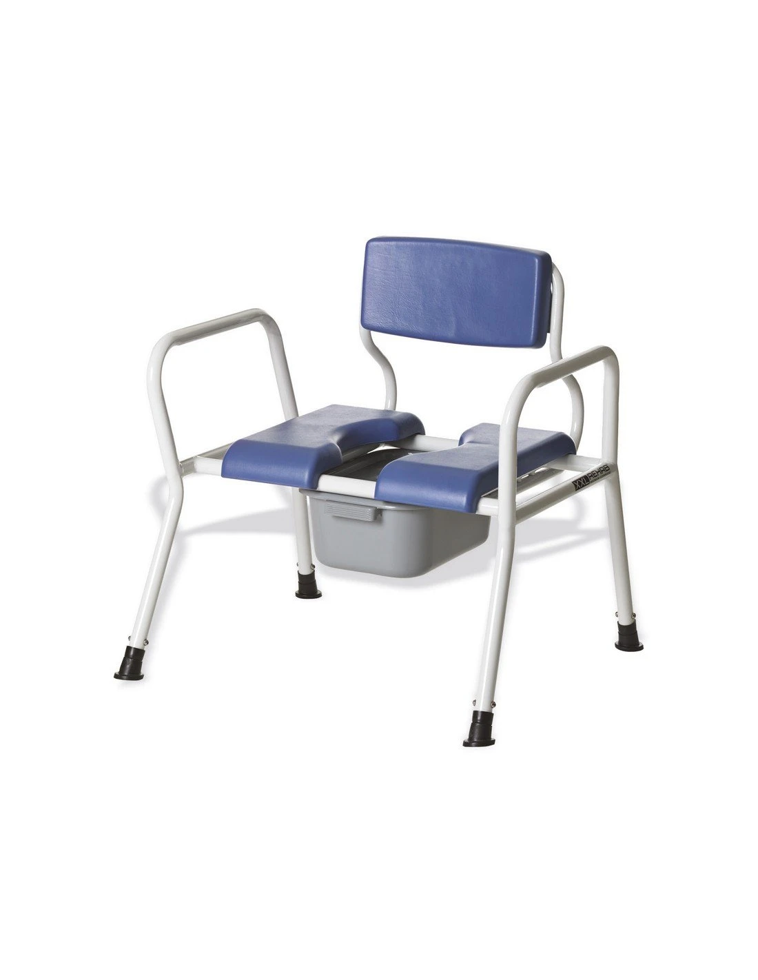 Silla bariátrica de ducha y WC fabricada con un material de alta tecnología muy ligero y resistente, que soporta hasta 325kg de carga con tan solo 8kg de peso, lo que permite mover la silla fácilmente de un lugar a oro.
