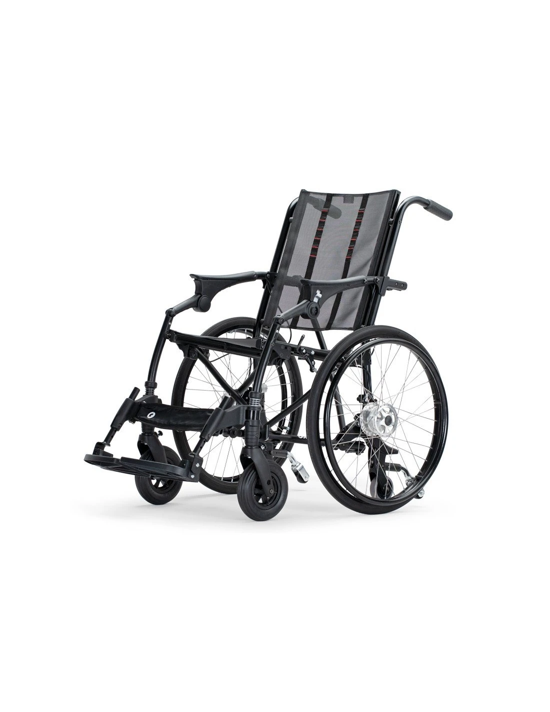 Silla autopropulsable para jóvenes y adultos fabricada en aluminio muy ligero con un diseño compacto y plegable, muy fácil de empujar y maniobrar.