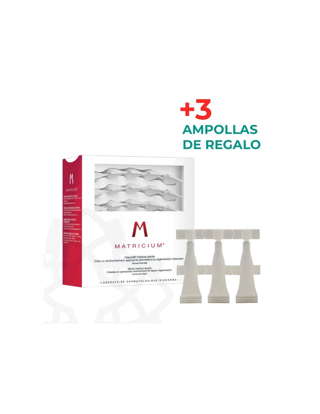 Las ampollas de MATRICIUM Bioderma reproducen el entorno celular idóneo para que la piel recupere sus propias capacidades de regeneración. Se compone exclusivamente de elementos presentes de forma natural en la piel y esenciales para la vida, la funcionalidad y la regeneración de las células. La piel recobra su funcionamiento biológico original, se recarga con todos los recursos necesarios para una verdadera regeneración cutánea.