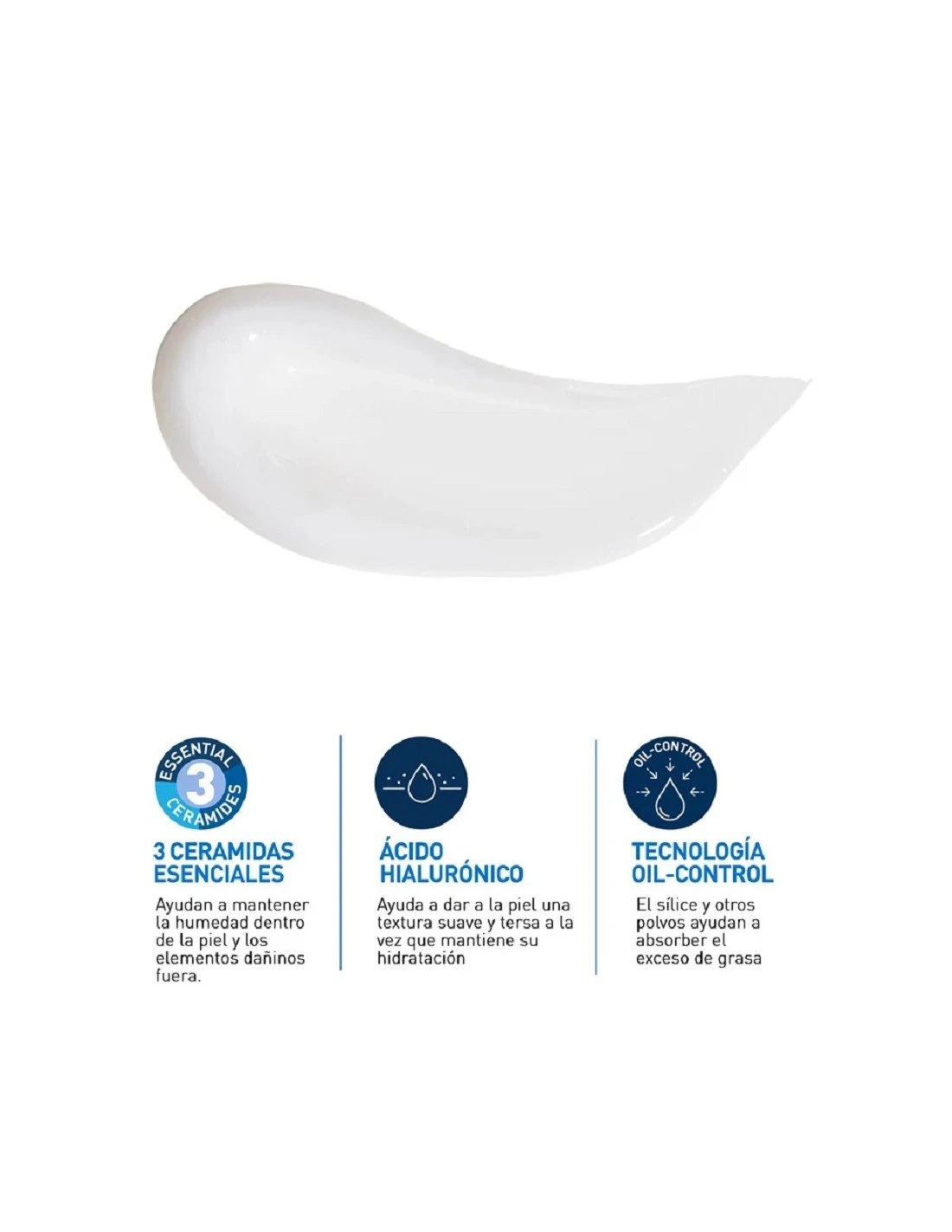 Una fórmula que combina el poder hidratante del Ácido Hialurónico con Tecnología Oil Control que absorbe el exceso de sebo, la acción calmante de la Niacinamida, y el poder de 3 Ceramidas Esenciales para restaurar la barrera cutánea.