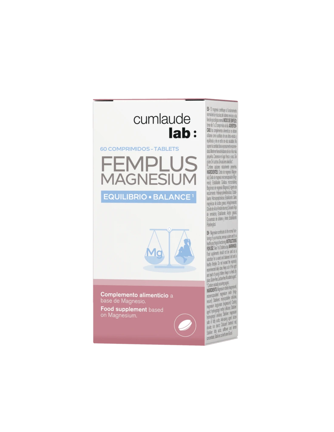 Cumlaude Femplus Magnesio es un complemento alimenticio que te aporta 125mg de Magnesio para apoyar el equilibrio físico, mental y hormonal.