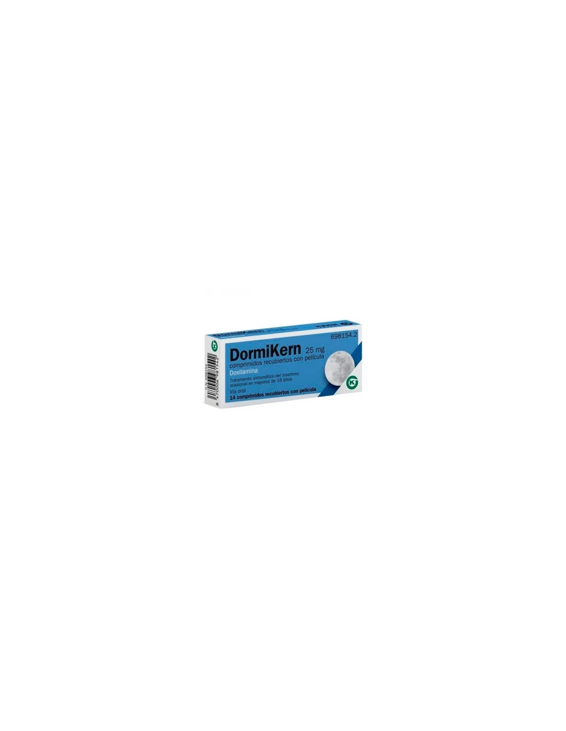 DormiKern 25 mg se presenta en forma de comprimidos recubiertos con película de color azul, oblongos y ranurados. Cada envase contiene 7 y 14 comprimidos.