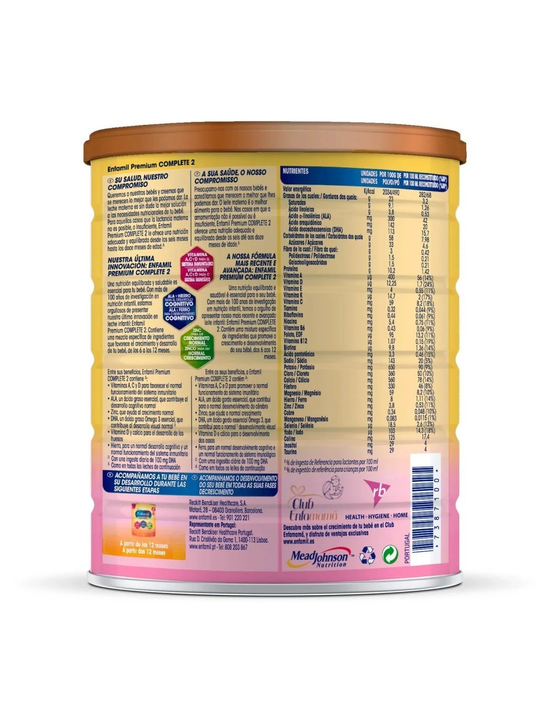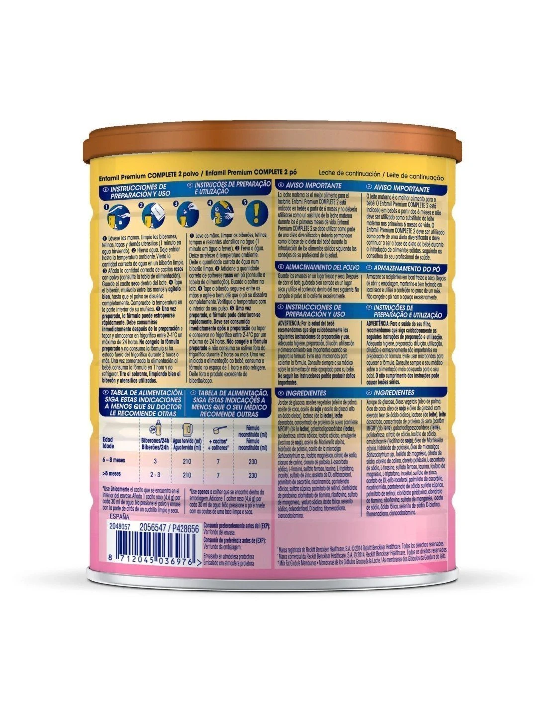 Enfamil Premium Complete 2 es una leche de continuación en polvo para bebés entre los 6 y los 12 meses específicamente diseñada para proporcionar una dieta nutritivamente equilibrada como complemento de alimentos sólidos, o después de haberse suspendido la lactancia materna.