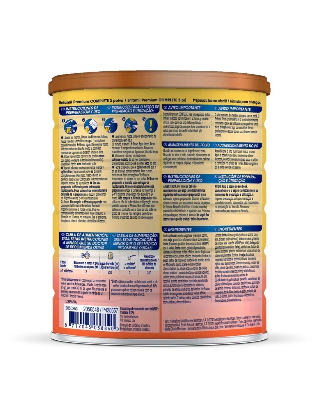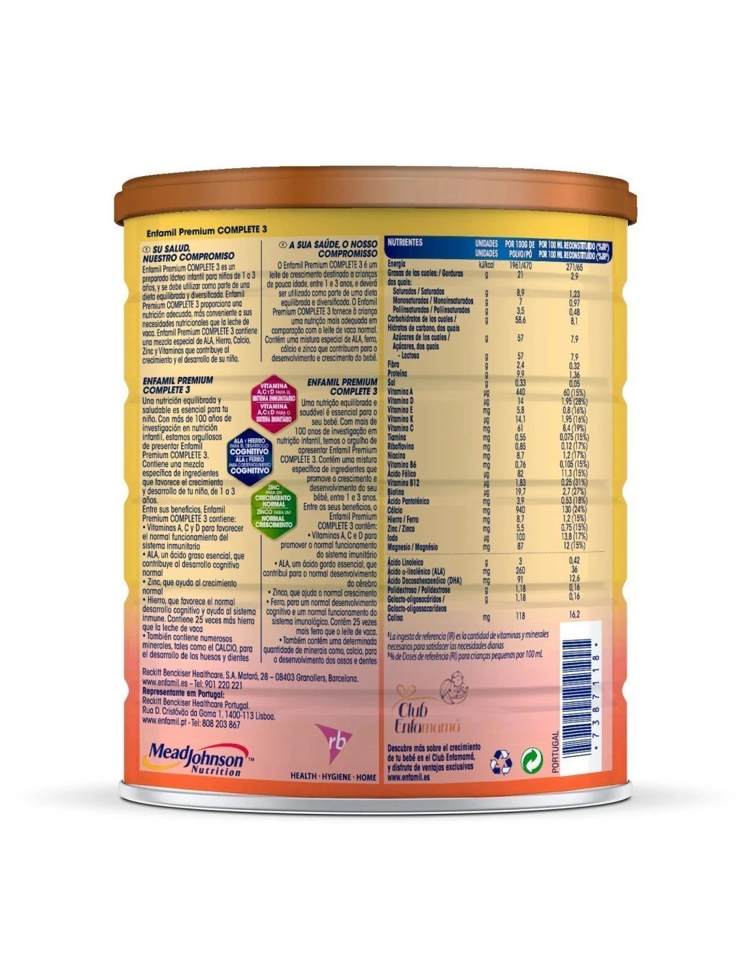 Enfamil Premium Complete 3 es una leche de fórmula en polvo para complementar la dieta equilibrada y diversificada de los niños de 1 a 3 años.