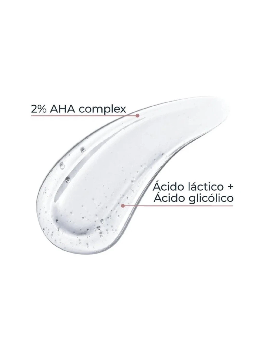 Su fórmula limpiadora combina un Complejo AHA al 2% (Ácido Glicólico, Ácido Láctico y Gluconolactona) que exfolian la superficie cutánea eliminando las células muertas, disuelven las impurezas y los poros obstruidos para que puedas lucir una piel con una mejor textura y aspecto renovado; potencia la luminosidad de la piel al instante, reduce el tono desigual y mantiene el equilibrio natural de hidratación de la piel dejándola suave y tersa.
