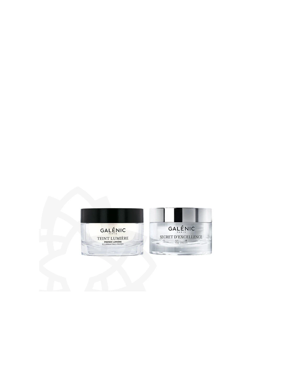Pack edición limitada de Galénic que contiene dos minitallas de 15ml Teint Lumiére Primer Lumiére Iluminador y Secret Excellence.
