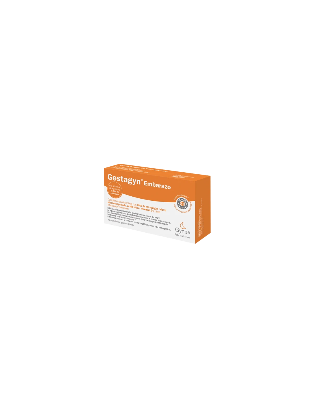 Cápsulas de Gestagyn especialmente formuladas para complementar las necesidades nutricionales del embarazo.