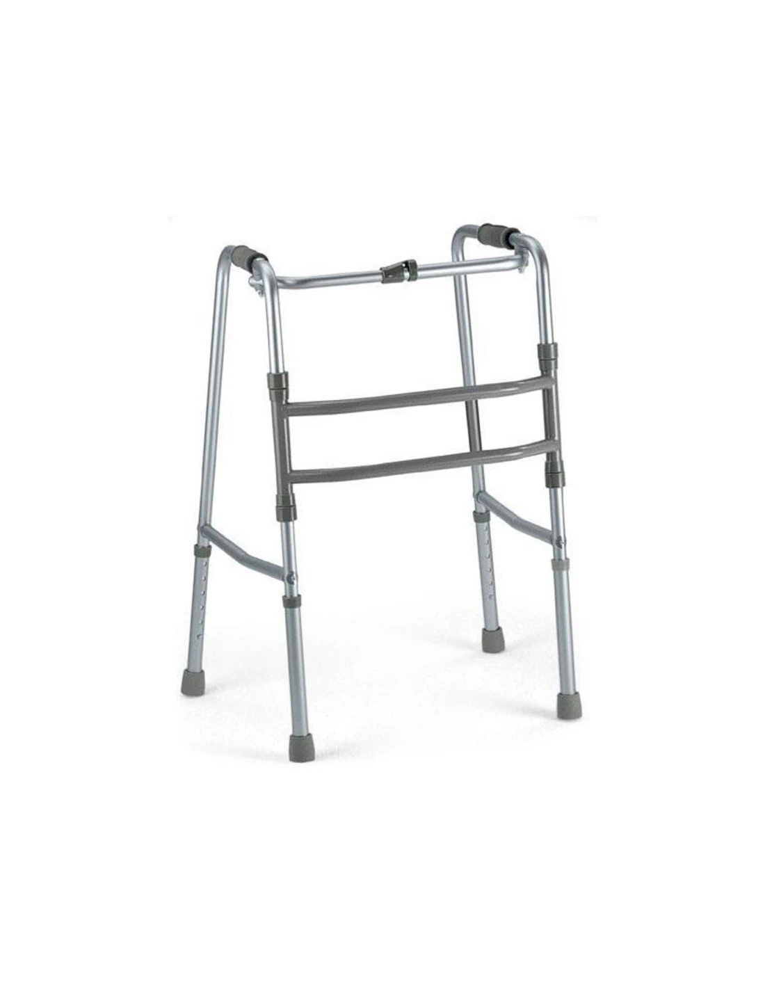 Andador sin ruedas fabricado en aluminio. Es fácilmente plegable y regulable en altura. Está indicado para personas de movilidad media. El andador deambulador permite un pequeño gira en su estructura, lo que permite acompañar el movimiento del usuario paso a paso sin necesidad