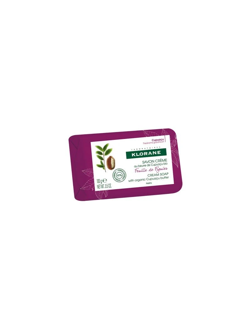 Pastilla de jabón de Klorane Fleuille de Figuier enriquecido con manteca de Cupuaçu (activo 1,5 veces más nutritivo que la manteca de karité) y textura ultraligera que limpia en profundidad e hidrata todo tipo de pieles durante 24h.