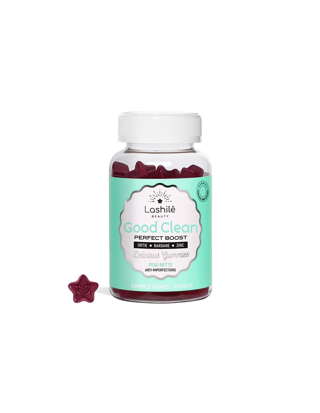 Lashilé Good Clean es un delicioso complemento alimenticio en gummies con sabor a Grosella Negra para reducir las imperfecciones de la piel y que luzca luminosa, sana y sin espinillas.