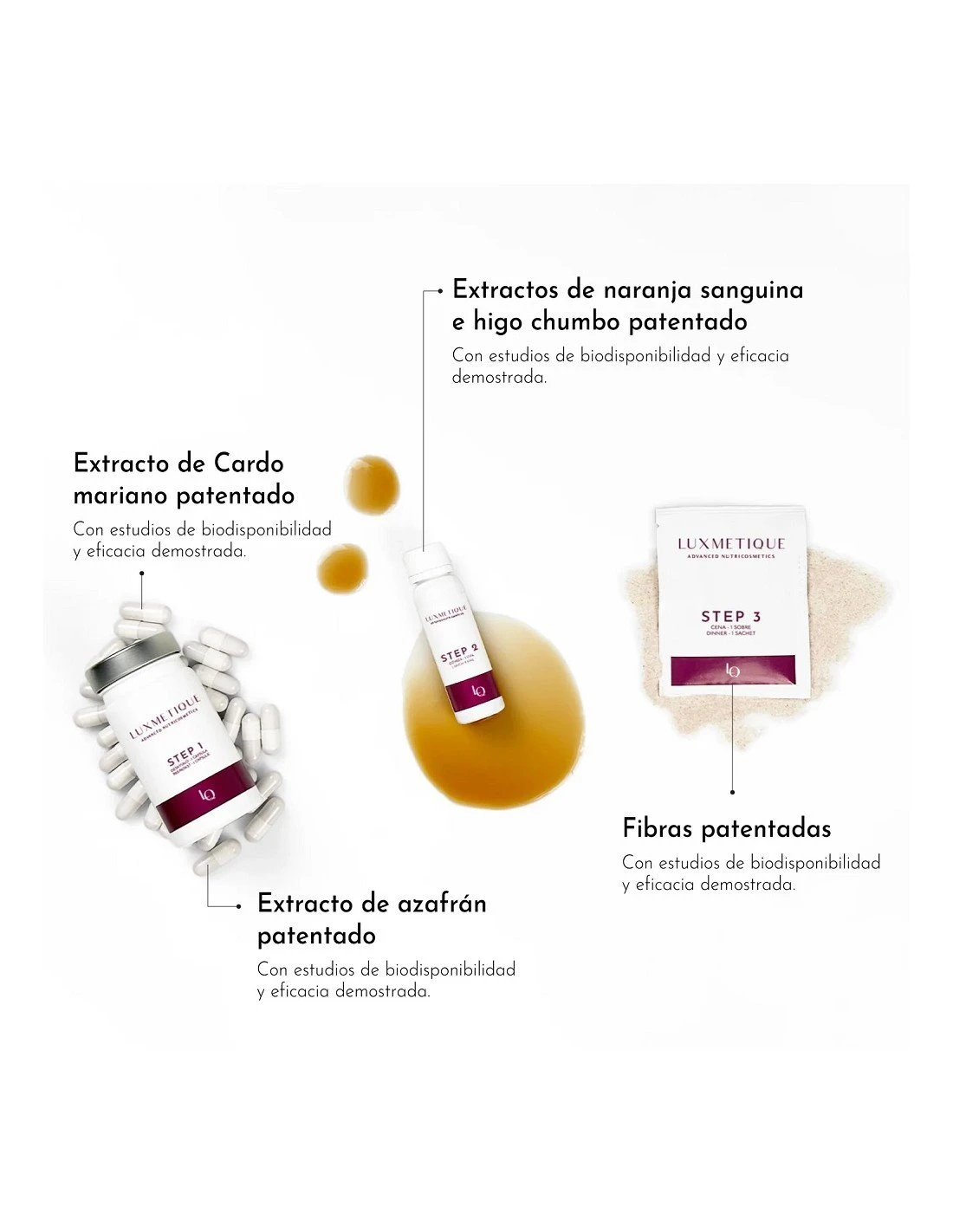 Control 3 Fórmula de Luxmetique es un complemento alimenticio para ayudarte a perder peso de forma controlada y equilibrada en 3 sencillos pasos: