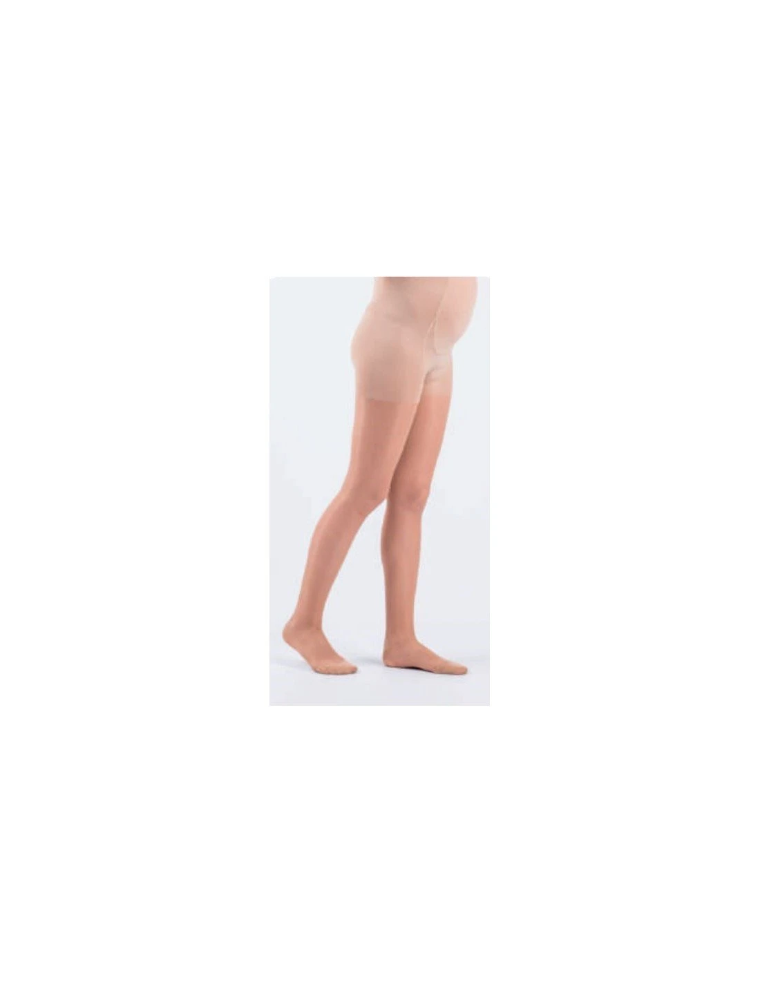 Esta media de compresión fuerte está fabricada en un tejido fino y sedoso con un pantalón calibrado diseñado especialmente para proporcionar mayor comodidad a las siluetas con abdomen voluminoso o mujeres gestantes.