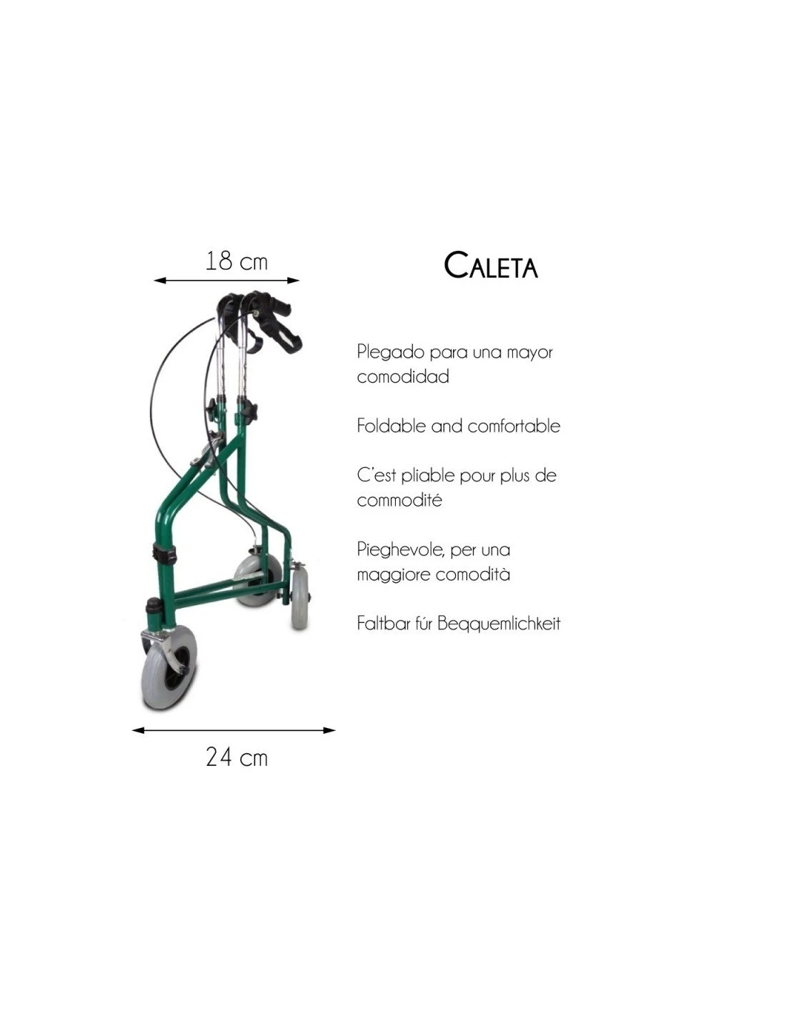 – Ancho plegado: zona de los puños 18 cm y la zona de las ruedas 24 cm.