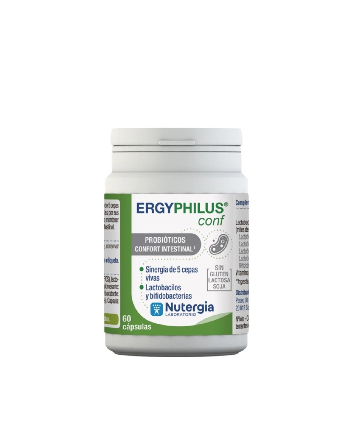 – Equilibrio de la flora intestinal: Nutergia ErgyPhilus Conf ayuda a mantener el equilibrio de la flora para que los nutrientes se absorban bien y la digestión sea buena.