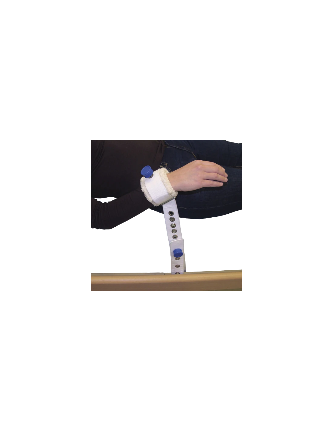 Arnés de sujeción de la muñeca a la cama fabricado en poliéster con forro de rizo acolchado y sistema de cierre magnético que permite una colocación cómoda evitando su manipulación por parte del paciente o personas no autorizadas.