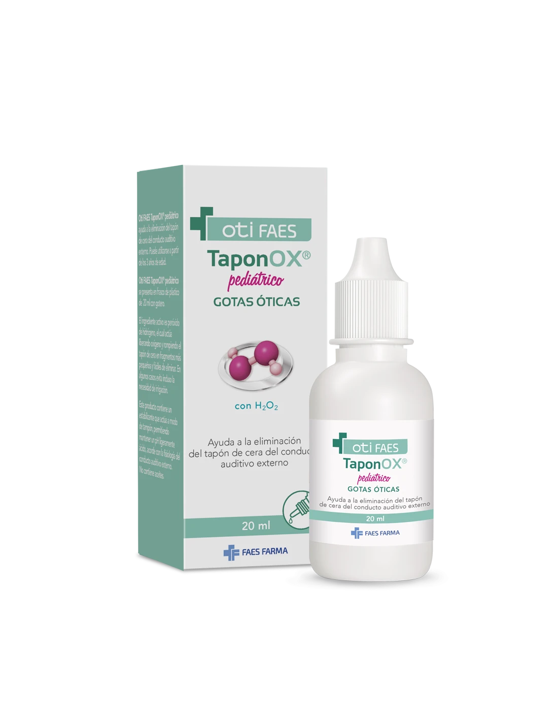 OtiFaes TaponOX Pediátrico Gotas ablanda y rompe el tapón de cera en fragmentos más pequeños y fáciles de eliminar utilizando Peróxido de Hidrógeno.