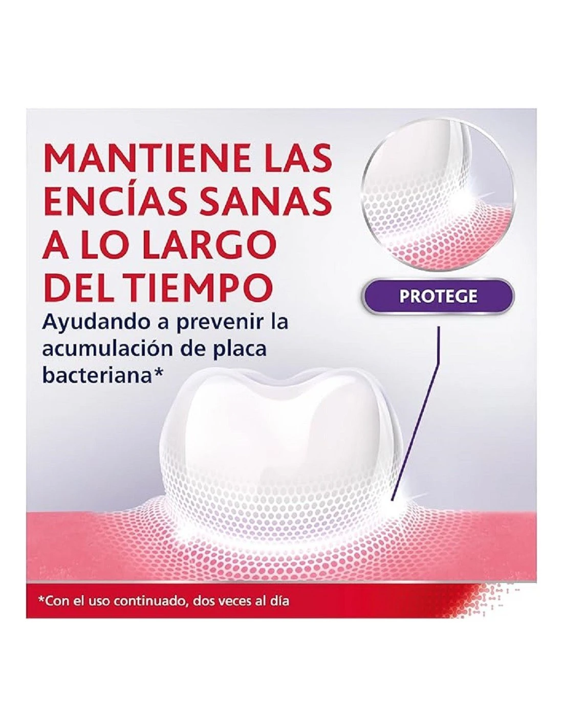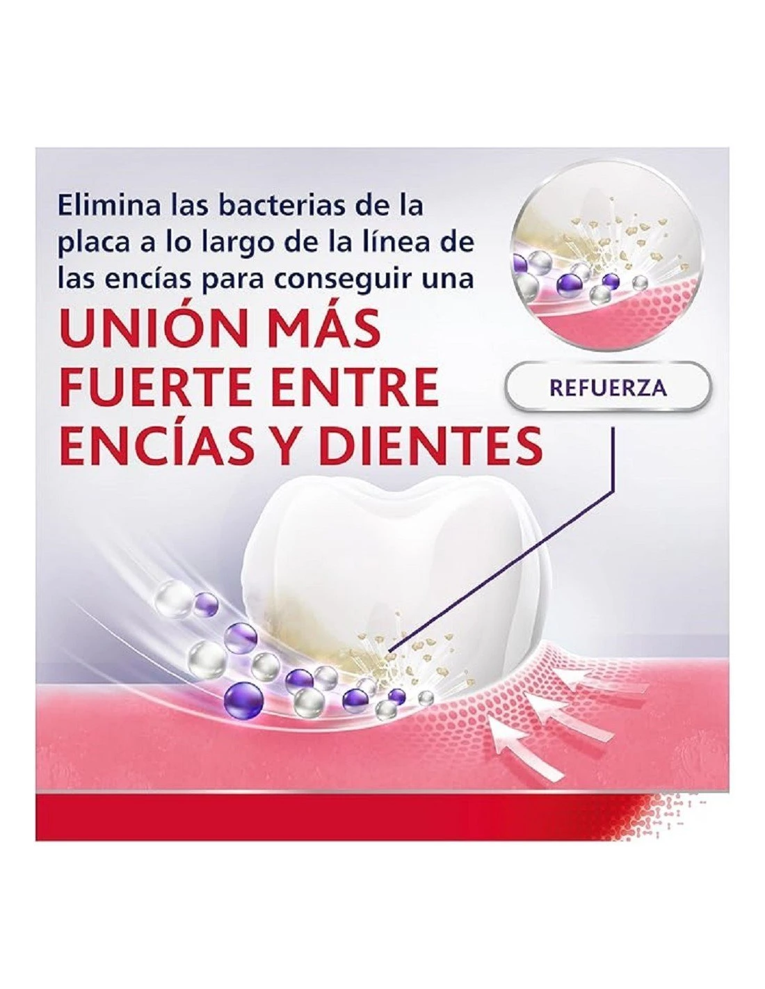 Una fórmula de uso diario con sabor a menta fresca con Ácido Hialurónico (fortalece la encía y favorece su regeneración), Cloruro de zinc (reduce la placa bacteriana y combate el mal aliento), y Flúor (fortalece el esmalte y proteger los dientes contra la aparición de caries) para ofrecer una protección completa y ayudarte a mantener unas encías sanas y unos dientes fuertes.