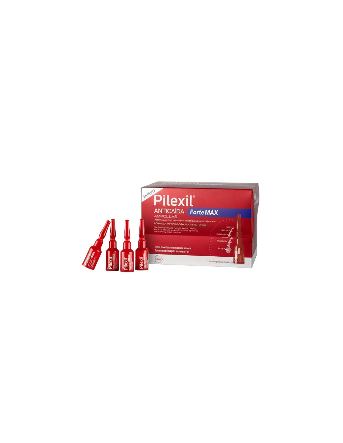 Pilexil Forte Max son unas ampollas con una innovadora fórmula para el tratamiento de la caída crónica y progresiva del cabello en fase avanzada producida por factores hormonales (como la menopausia) o hereditarios (alopecia androgenética).