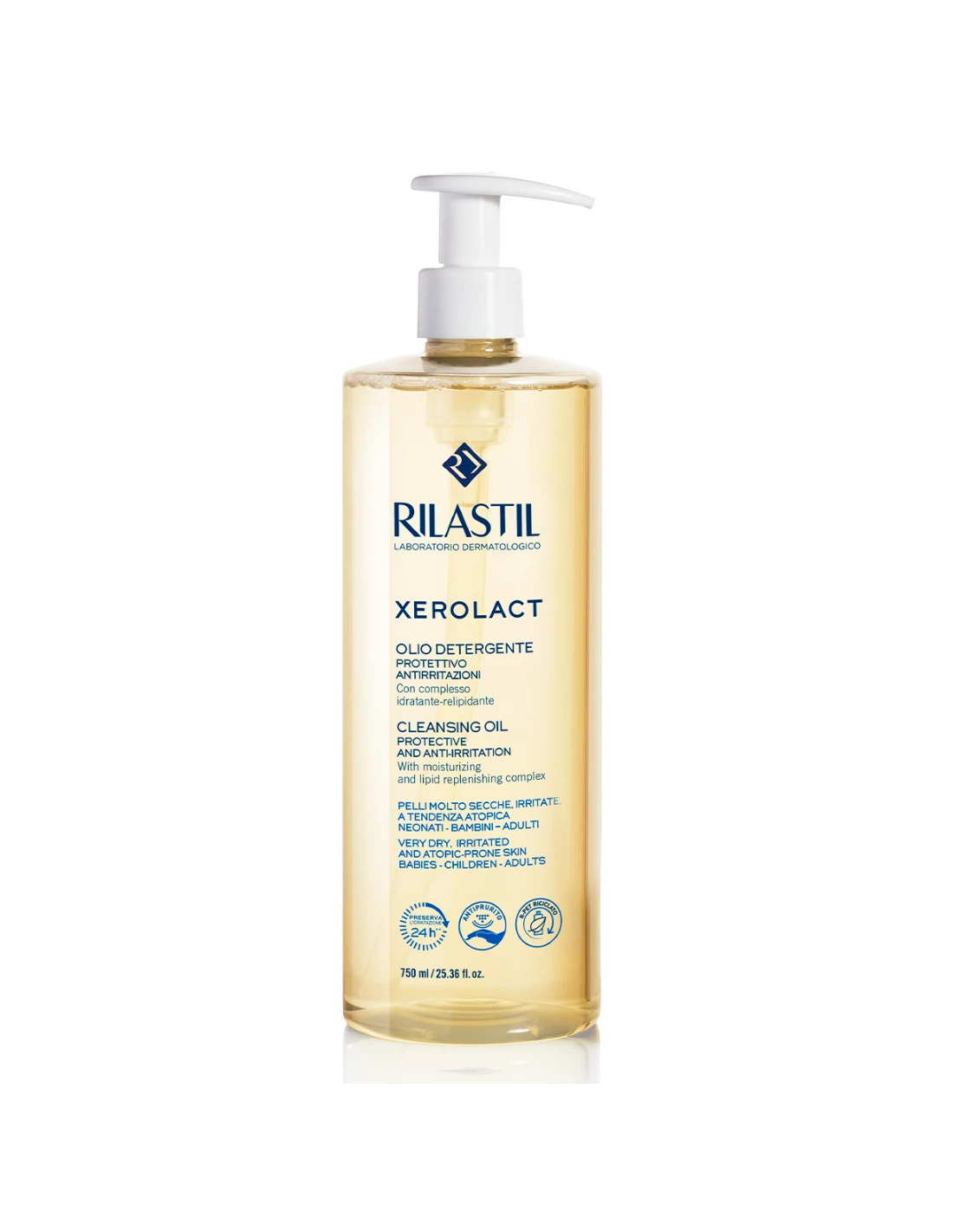 Compra Rilastil Xerolact Aceite Limpiador en Farmagranada y cuida la piel sensible de toda la familia.
