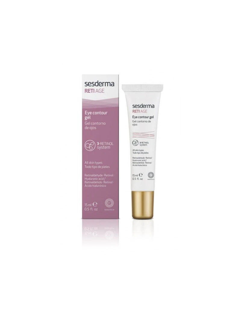 Contorno de ojos anti-aging de Sesderma Reti-Age que previene y corrige los signos de envejecimiento cutáneo causados principalmente por el envejecimiento cronológico: líneas de expresión, arrugas, pérdida de elasticidad, luminosidad y tonicidad. Indicado en todo tipo de pieles.