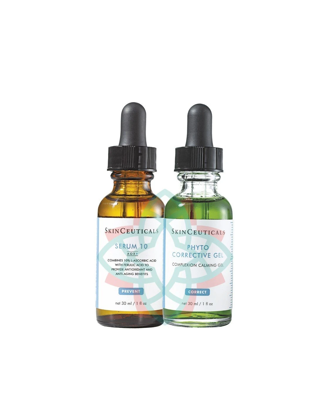 Fantástico pack de SkinCeuticals que incluye tu concentrado antioxidante con Vitamina C para piel sensible Sérum 10 de 30ml junto al gel hidratante, suavizante y calmante para pieles sensibles Phyto Corrective Gel de 30ml.
