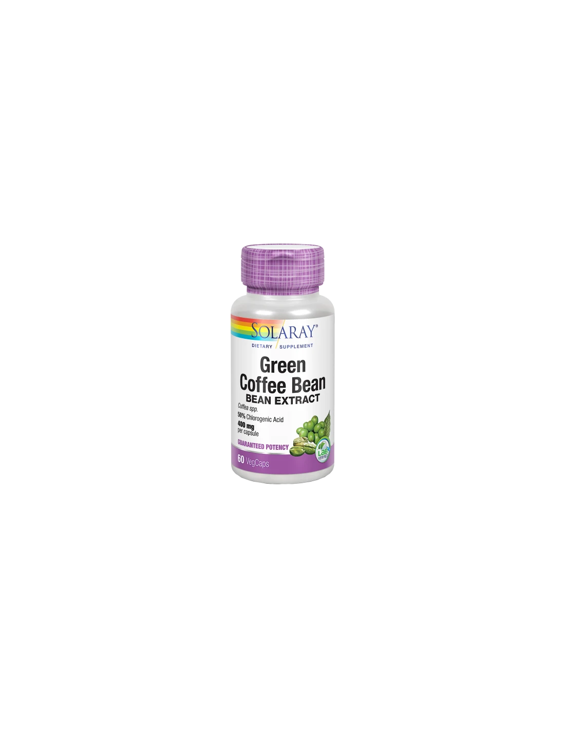 Solaray Green Coffe Bean es un complemento alimenticio de extracto del grano del Café Verde para acelerar el metabolismo y aumentar la quema de grasa corporal.