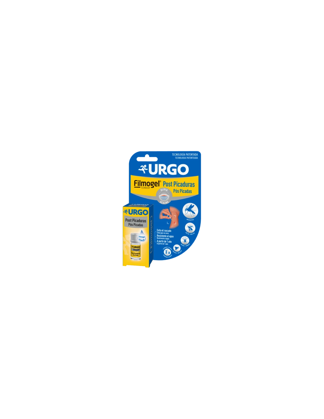 Film transparente de Urgo indicado en caso de 7 picaduras de insectos: picaduras de mosquitos, avispas, abejas, tábanos, arañas, hormigas y ácaros. Resistente al agua y apto para niños a partir de 1 año.