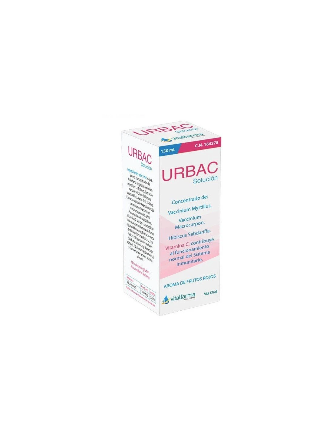 Vitalfarma Urbac Solución contiene una combinación de Arándano Rojo Americano, Vaccinium Myrtillus, Hibiscus, Ortiga y Vitamina C, un compuesto que aumenta la acidez de la orina para evitar la formación de bacterias e impedir que éstas se adhieran al tracto urinario, de esta forma se eliminan fácilmente a través de la orina. Favorece la producción y eliminación de la orina, protege las vías urinarias y las células frente a la oxidación, mejora la absorción del hierro y apoya el Sistema Inmunitario.